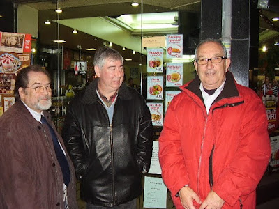 A degustação meteu bola de carne, bolinhas de bacalhau, sardinhas fritas, bacalhau à casa, polvo, vitela assada, rabanadas, leite creme, queijo da serra, com o devido acompanhamento de dois verdes - branco da Lixa e um outro que só o patrão bebe - (gentil oferta do patrão Abreu) e dois tintos: Periquita e Borba. Incluindo, para rematar, um espumoso das Caves D. Henrique, meio bruto. Cafés e digestivos. Tudo à fartasana pela módica (em função da fartasana, claro) de 25 euros.