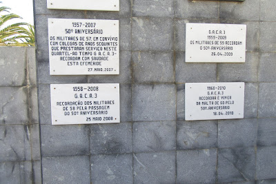 Num bloco de granito, gravados os vários nomes que este Quartel teve durante a sua vida. Falta o nome actual (R.E.3) criado em 30.06.1993.